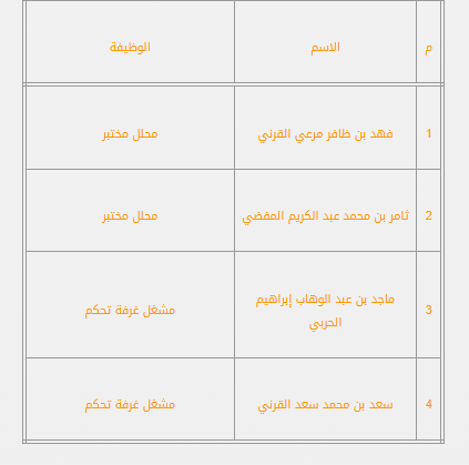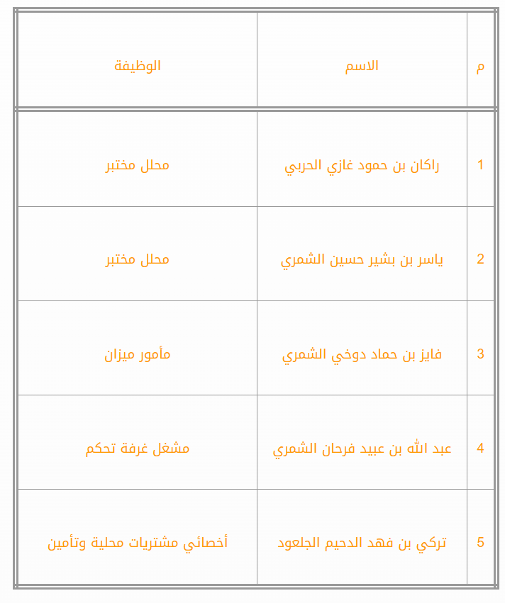 أسماء المقبولين على وظائف فرع المؤسسة (بحائل) وتم إبلاغهم برسائل نصية على هواتفهم لإستكمال اجراءات التعيين حسب البيان الاتي: