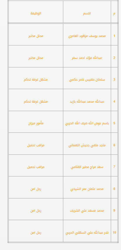 أسماء المقبولين على وظائف فرع المؤسسة (بجدة) وتم إبلاغهم برسائل نصية على هواتفهم لإستكمال اجراءات التعيين حسب البيان الاتي: