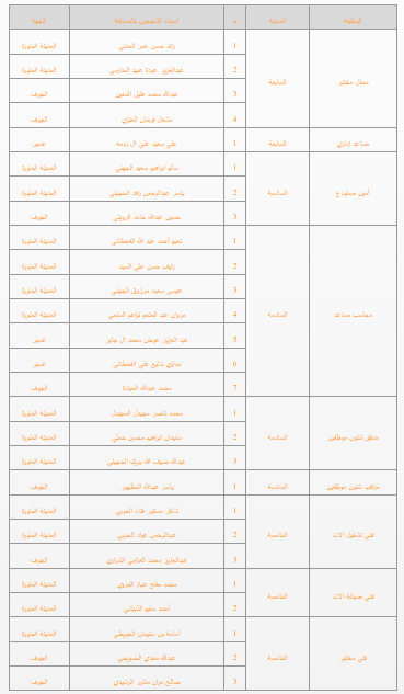 المؤسسة تعلن عن اسماء الناجحين بالمسابقة الوظيفية التي اجريت بفروع المؤسسة(المدينة المنورة/عسير/الجوف) كما هو موضح بالتالي: