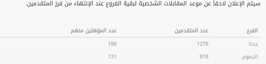 تود المؤسسة أن تعلن انه تم الإنتهاء من فرز بيانات المتقدمين على وظائف جدة / الجموم و كذلك ترشيح المؤهلين منهم للمقابلة الشخصية والتي تطابقت بياناتهم مع الشروط المطلوبة للوظيفة