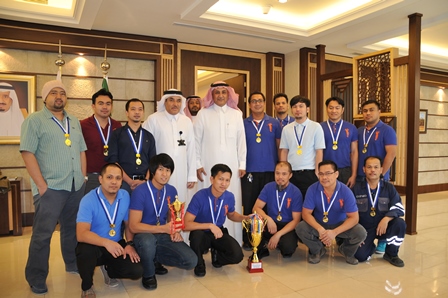وقدم معالية التهنئة للفريق البطل واثنى على ماقدموه من مستوى وروح رياضية خلال المنافسة ،وابدى حرصه على إقامة مثل هذه الفعليات التي تجسد روح التنافس الشريف بين منسوبي المؤسسة.
