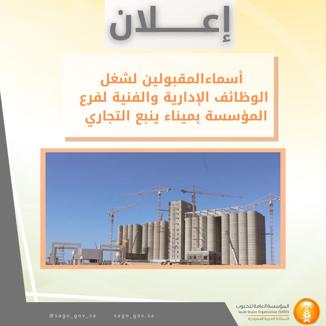 أسماء المقبولين على الوظائف الإدارية والفنية لفرع المؤسسة بميناء ينبع التجاري