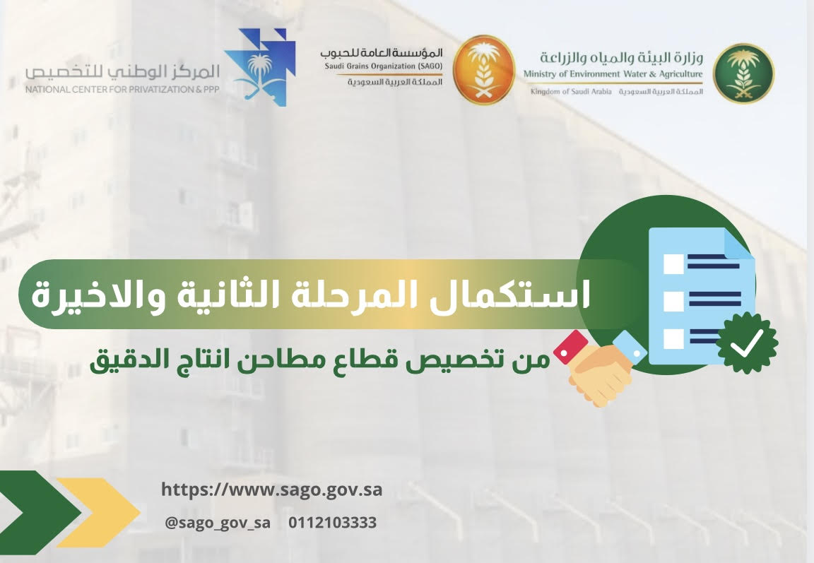 يعلن المركز الوطني للتخصيص والمؤسسة عن اكتمال المرحلة الثانية والأخيرة من عملية تخصيص قطاع مطاحن إنتاج الدقيق، والتي شملت عملية طرح كامل الحصص في شركتين من شركات المطاحن الأربعة (شركة المطاحن الثانية وseشركة المطاحن الرابعة) لمستثمرين استراتيجيين من القطاع الخاص. و قد قام المستثمرون المؤهلون بإجراء الدارسات المهنية اللازمة خلال الفترة السابقة والتي انتهت بتقديمهم للعروض المالية بتاريخ 7 رمضان 1442هـ (الموافق 19 أبريل 2021م).