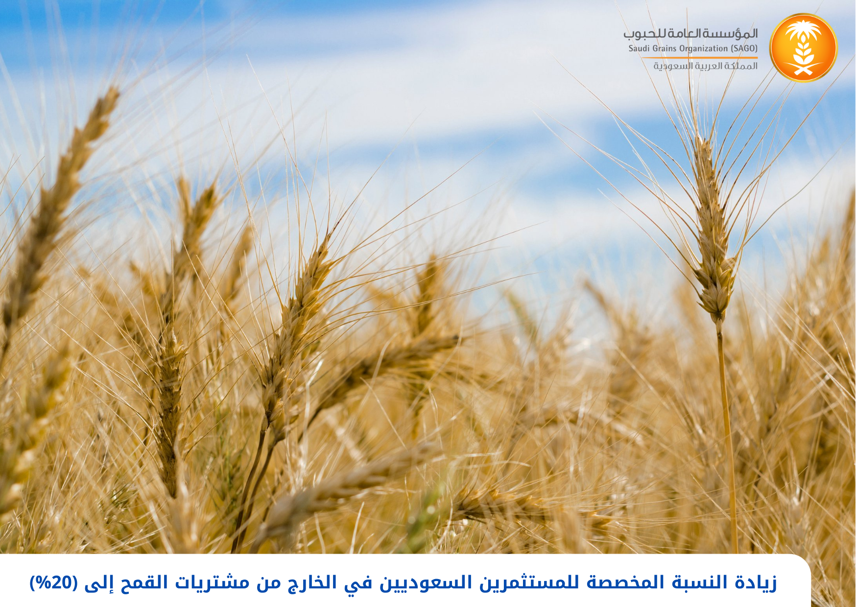 أكدت وزارة البيئة والمياه والزراعة بأنه تم زيادة النسبة المخصصة للمستثمرين السعوديين في الخارج من مشتريات المملكة من القمح إلى (20%) بدلاً من نسبة (10%) بداية من العام المالي (1443/1444 هـ).