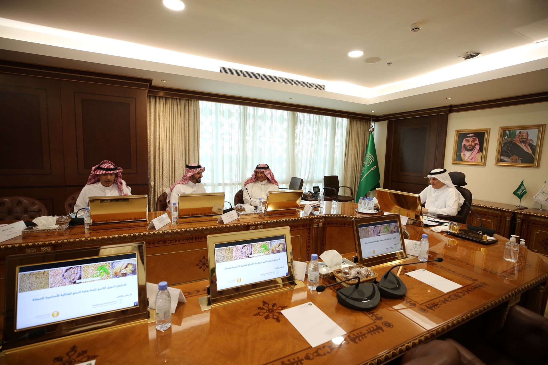 عقدت لجنة وفرة السلع الغذائية والمنبثقة من لجنة الأمن الغذائي برئاسة معالي وزير البيئة والمياه والزراعة رئيس اللجنة المهندس عبدالرحمن بن عبدالمحسن الفضلي، اجتماعها الدوري التاسع، وذلك لاستعراض وفرة السلع الغذائية الأساسية في الاسواق   واحجام المخزونات ومتابعة سلاسل الإمداد ، إضافة إلى استعراض جهود التنسيق مع القطاع الخاص من قبل فريق الرصد ، وذلك في ضوء ما تشهده أسواق الغذاء العالمية من تطورات على خلفية الازمة الروسية الاوكرانية.