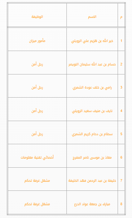 أسماء المقبولين على وظائف فرع المؤسسة (بحائل) وتم إبلاغهم برسائل نصية على هواتفهم لإستكمال اجراءات التعيين حسب البيان الاتي: