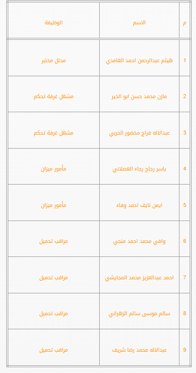 أسماء المقبولين على وظائف فرع المؤسسة (بجدة) وتم إبلاغهم برسائل نصية على هواتفهم لإستكمال اجراءات التعيين حسب البيان الاتي: