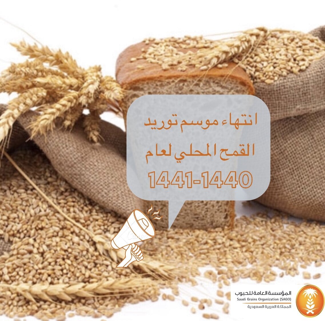 تعلن المؤسسة عن انتهاء موسم استلام القمح المحلي للعام 1440/1441هـ، بتوريد صافي كمية (202,150) طن تم استلامها من (930) مزارعاً في (8) من فروعها بمختلف مناطق المملكة، بإجمالي قيمة (239,965,833) ريال. وتم صرف ما قيمته (154,846,006) ريال مقابل (130,434) طن لعدد(561) مزارعاً على (6) دفعات، وجاري استكمال صرف باقي المبالغ المستحقة وفقا لإجراءات قفل الحساب التي يقوم بها المزارعين الكترونياً بعد استكمالهم المستندات النظامية للصرف.