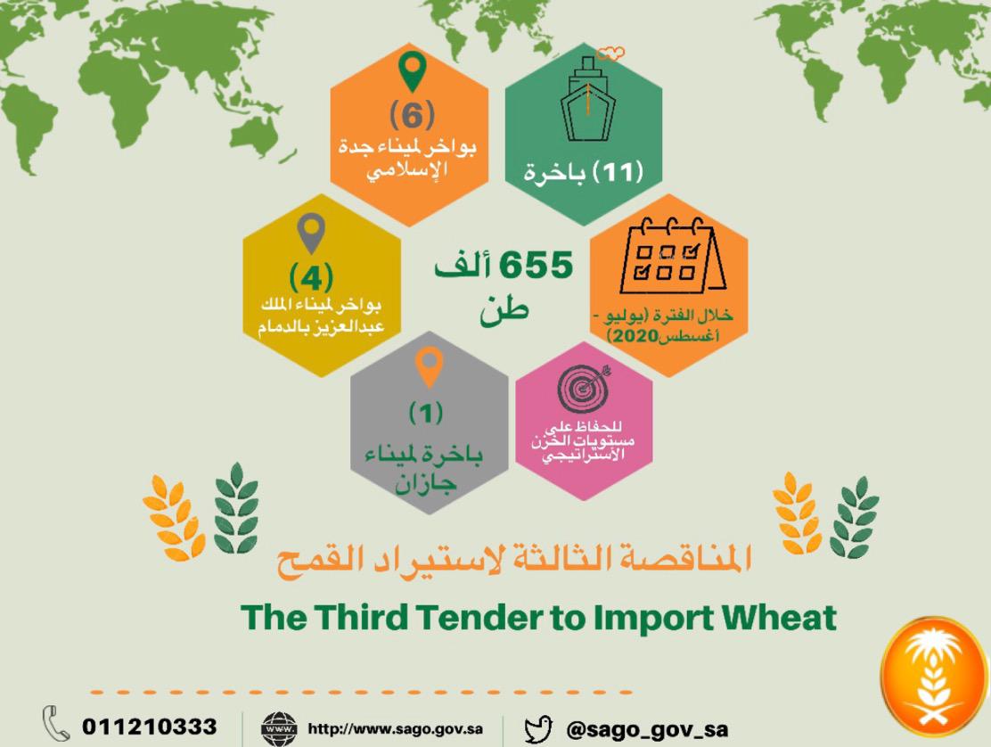 طرحت المؤسسة اليوم المناقصة الثالثة لاستيراد كمية (655) ألف طن قمح لهذا العام للتوريد خلال الفترة (يوليو – أغسطس2020).