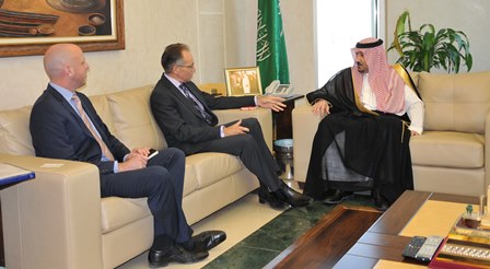 استقبل معالي مدير عام المؤسسة المهندس وليد بن عبدالكريم الخريجي بمكتبه اليوم سعادة سفير استراليا لدى المملكة السيد نيل هوكنز وجرى خلال اللقاء تبادل الاحاديث الودية , والتباحث في المجالات الزراعية التي تهم البلدين الصديقين ومن ضمنها تجارة الغلال والفرص المتاحة للتعاون بين المملكة العربية السعودية واستراليا في مجال الأمن الغذائي حضر الاستقبال مساعد مدير عام المؤسسة لشئون الاستيراد المهندس أحمد بن عبدالعزيز الفارس